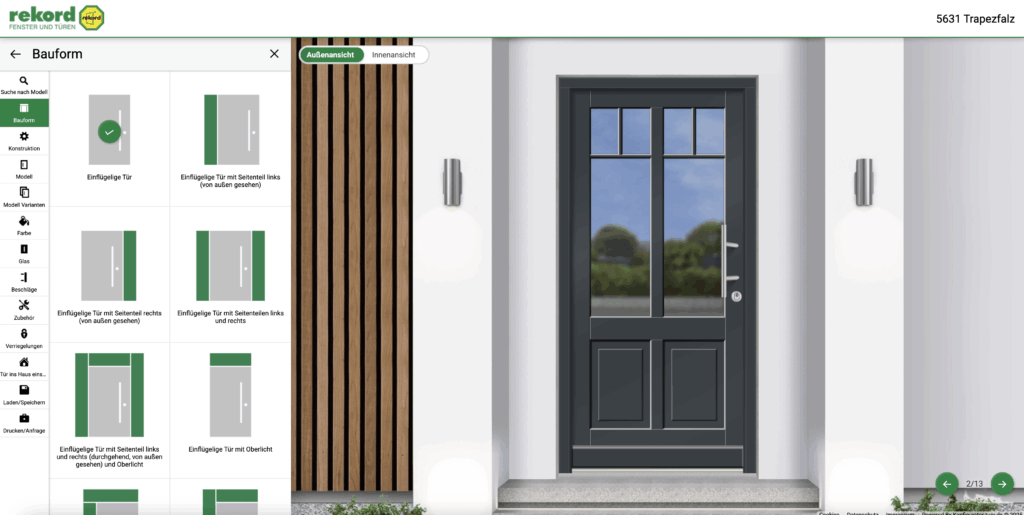 Ob klassisch, modern oder als maßgeschneiderte Sonderlösung – eine Haustür von rekord ist immer ein Unikat. Neben ihrer ästhetischen Wirkung überzeugen die Türen durch geprüfte Sicherheit, hervorragende Wärmedämmung und lange Lebensdauer. Damit sind sie nicht nur ein Blickfang, sondern auch eine Investition in den Werterhalt Ihrer Immobilie.