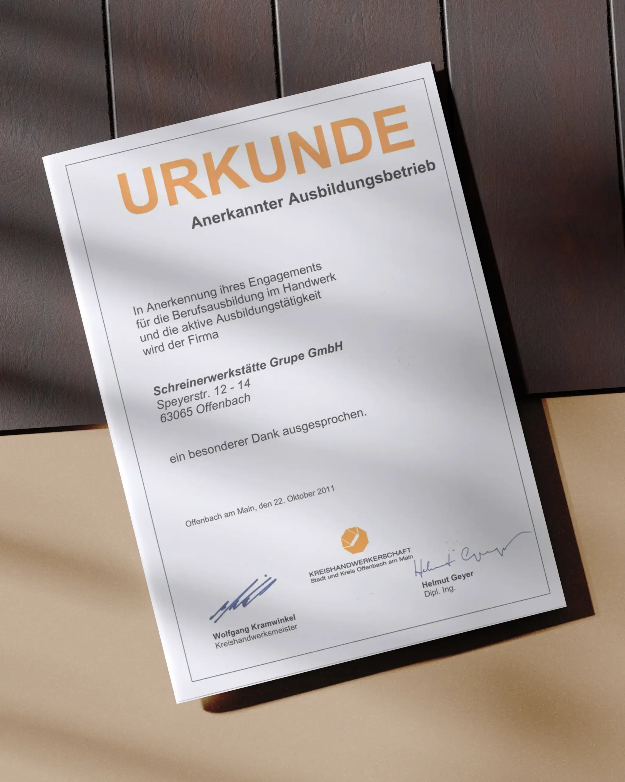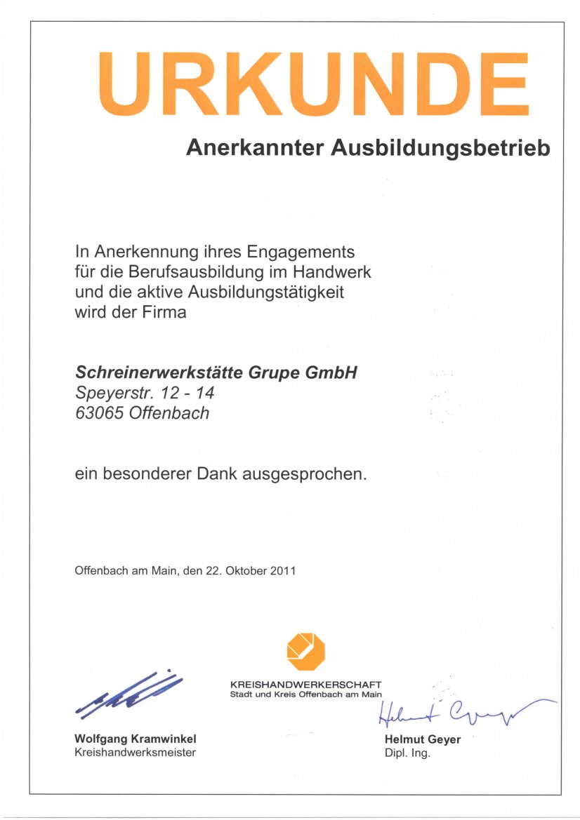 Seit 1932 steht die Schreinerei & Glaserei Grupe für Qualität, Zuverlässigkeit und handwerkliche Kompetenz im Rhein-Main-Gebiet.